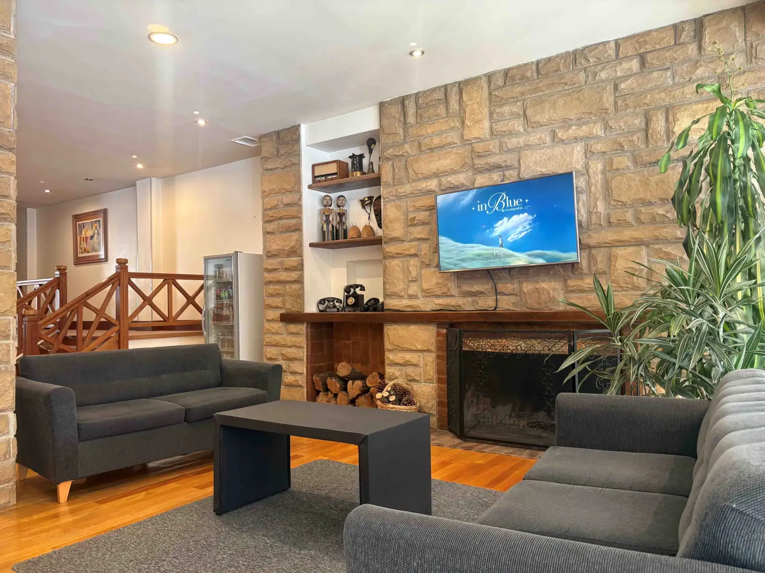 Sala de estar con estufa hogar